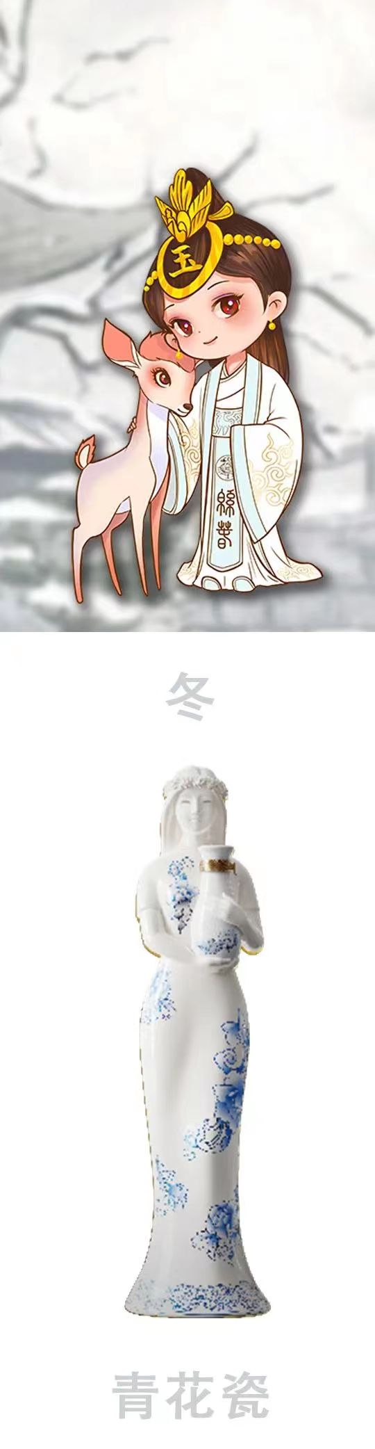 為了加深顧客對綿春酒業(yè)的認知,綿春酒業(yè)特在三八婦女節(jié)正式推出品牌吉祥物“玉妃”?!坝皴槲铩钡脑O計靈感是以古蜀國十二世開明王和玉妃的歷史傳說作為IP原型,結(jié)婚“玉妃”的時代背景,融入傳統(tǒng)元素,是具代表性的國漫風吉祥物,萌趣十足又不缺俏皮可愛;同時也祝愿天下的婦女像玉妃一樣美麗且擁有無限可能。